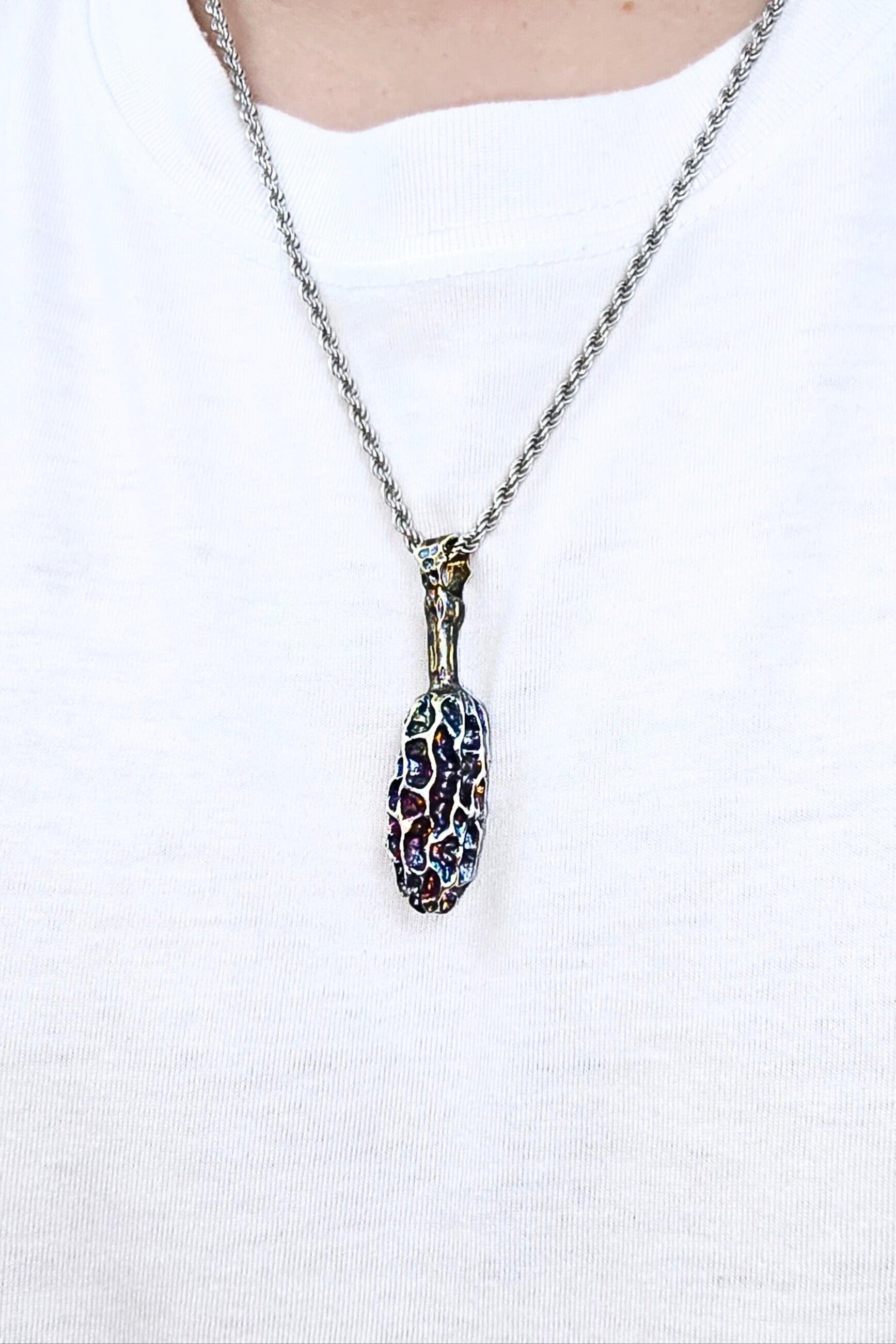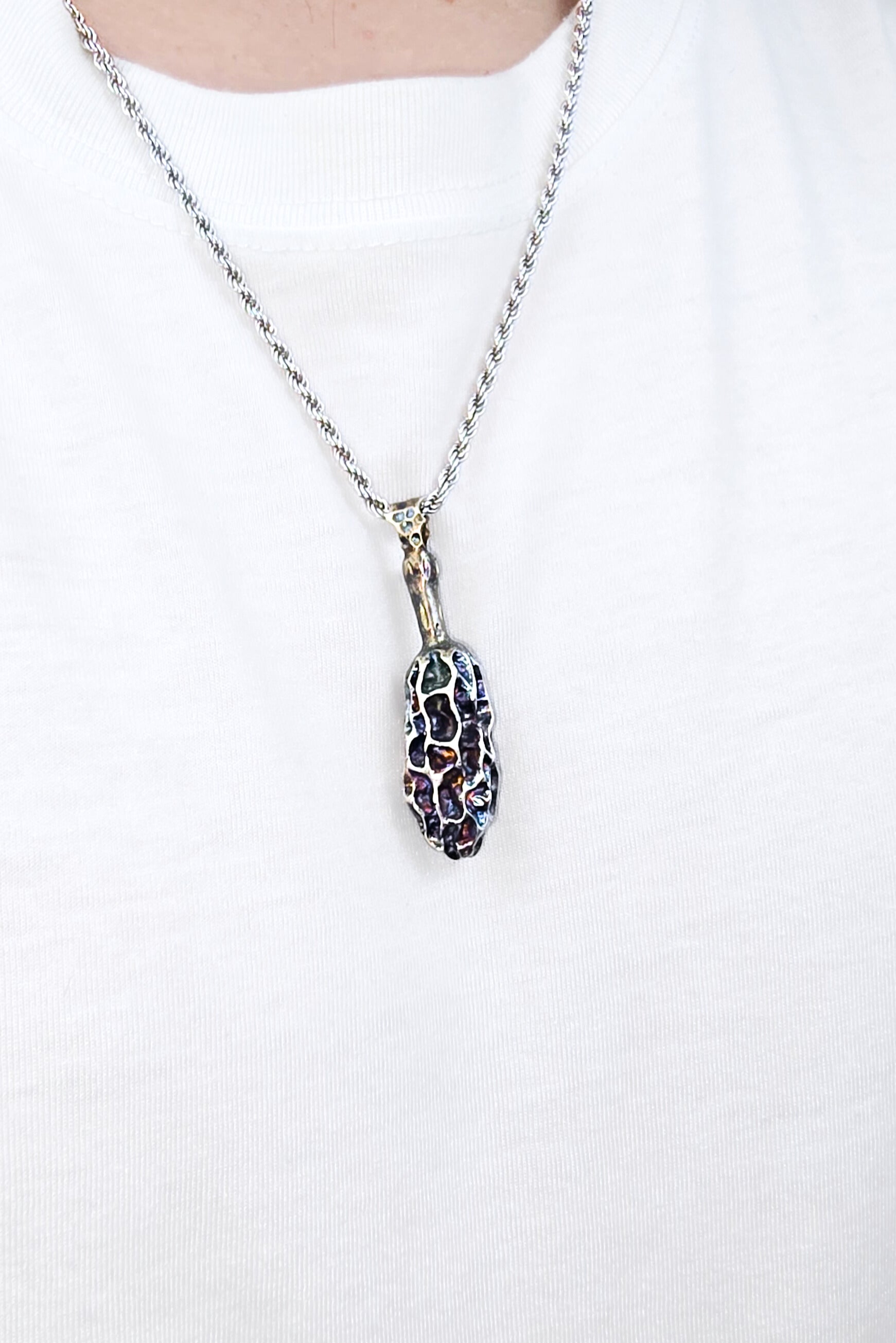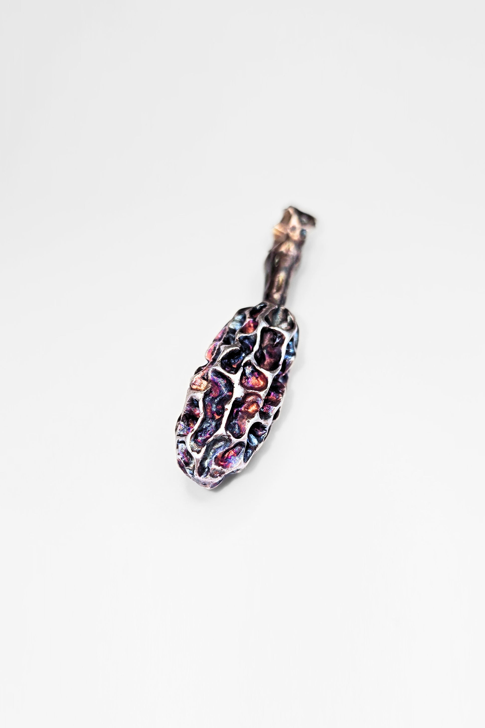 This solid morel pendant weighs in at over 30 grams of sterling silver. It is beautifully oxidized, giving it a stunning contrast of colors and represents one of the most sought after mushrooms in the Pacific Northwest!