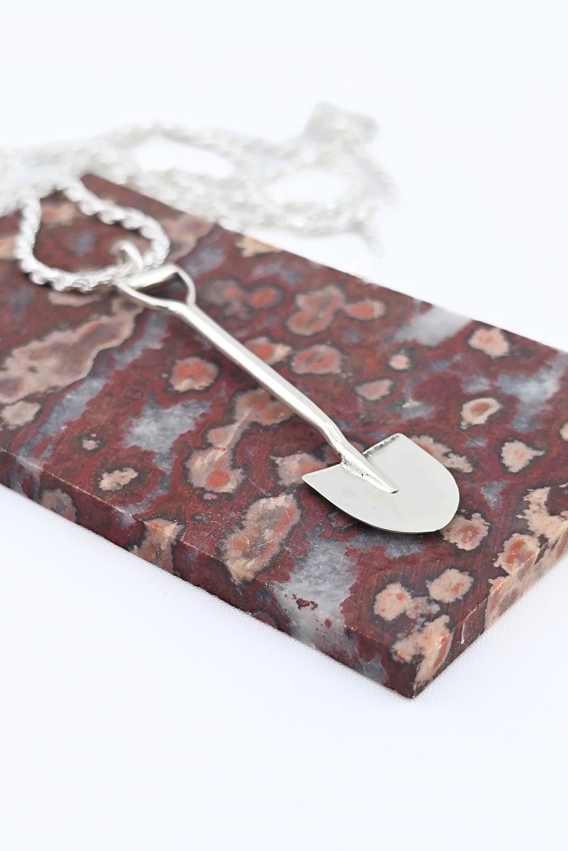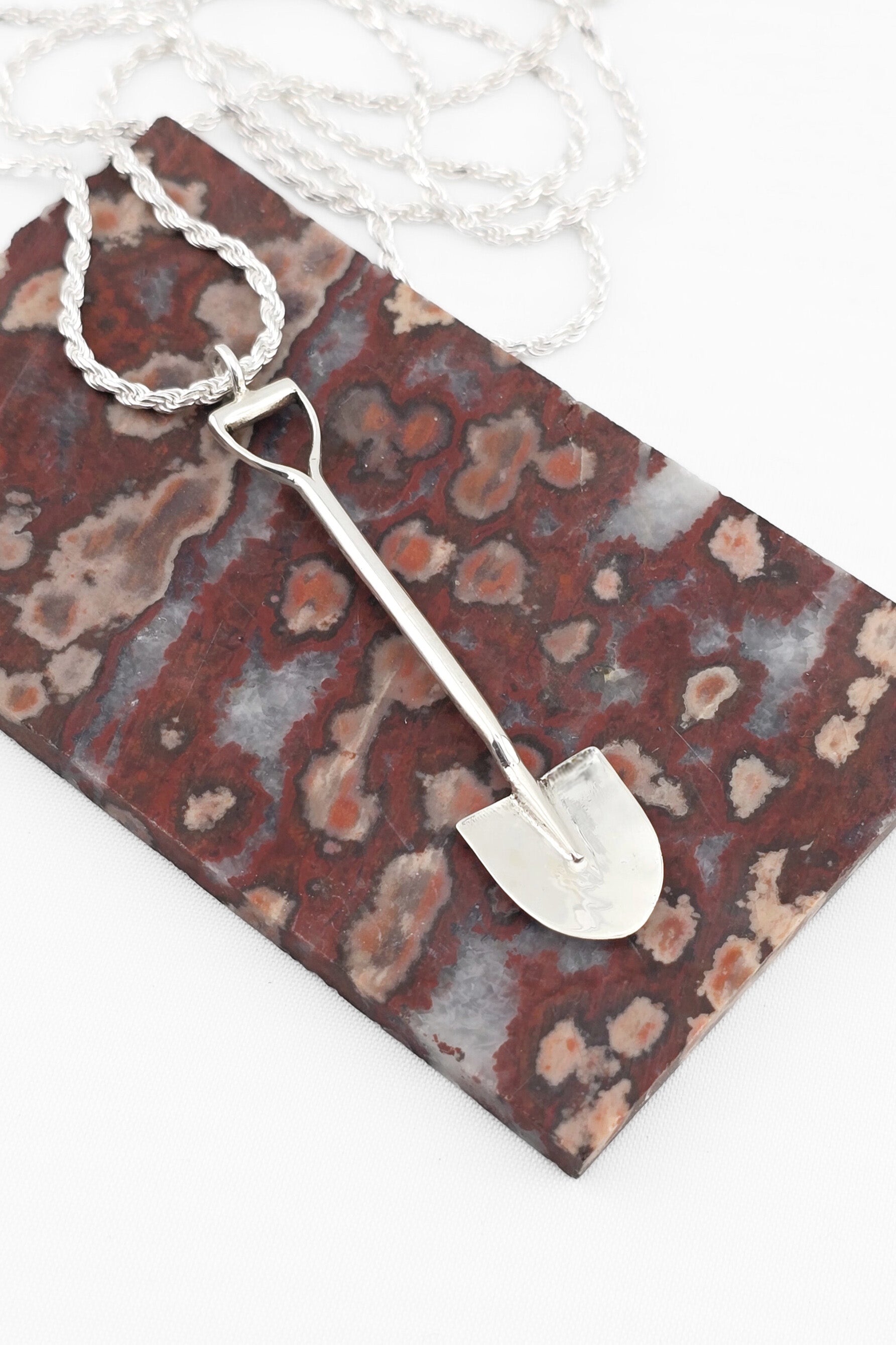 Representing the strength and resilience of gold miners, this sterling silver pendant showcases the classic shovel design. Expertly crafted with intricate detailing, it symbolizes the dedication and perseverance of those who toil in the mining trade. This pendant offers a perfect balance of rugged elegance and timeless style, making it a meaningful piece for anyone who admires the mining profession.